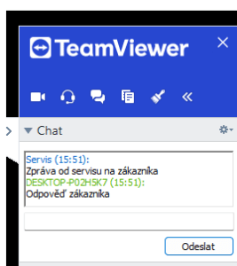 V případě potřeby servis může otevřít chatovací kanál, který vypadá takto: